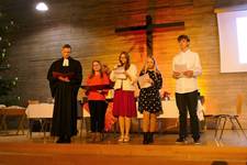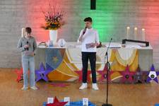 Begrüßung, Psalmgebet, Fürbitten und auch der Segen wurden von den Konfirmanden übernommen. Begleitet wurde der Gottesdienst von Pfarrerin Erlecke.