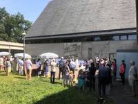 An Fronleichnam besuchten uns katholische Geschwister aus drei Gemeinden (St. Hedwig, St. Bernhard und St. Martin). Für ihre Prozession unter dem Motto „Ich will euch Zukunft und Hoffnung geben“ haben wir die erste Station im Hof der Emmauskirche angeboten. Kirchenälteste Nicole Belatra und Na-Nun Sophia Jung bereiteten den Altar und eine Musik vor. Pfarrer Jung hielt eine Predigt mit dem Thema Elia in der Wüste (1.Kön 19, 4-8), bevor Pater Thomas den feierlichen eucharistischen Segen gab.
