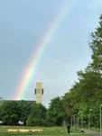 Das Volk Gottes ist unterwegs durch die Zeiten auf dem Weg zu Gott. Äußeres Zeichen ist das hochgezogene Zeltdach.