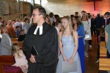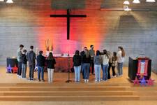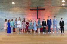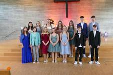 Am 19.11. wurden die sieben Konfirmandinnen und Konfirmanden im Rahmen des Gottesdienstes am Friedenssonntag durch Pfr. Hauser vorgestellt. Von den Konfis wurden Friedensmotive erarbeitet und mit Hammer, Meißel und Farben in Stelen eingearbeitet.