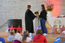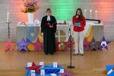 Begrüßung, Psalmgebet, Fürbitten und auch der Segen wurden von den Konfirmanden übernommen. Begleitet wurde der Gottesdienst von Pfarrerin Erlecke.