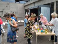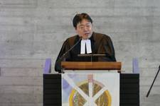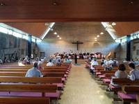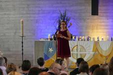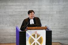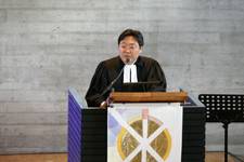 An Fronleichnam besuchten uns katholische Geschwister aus drei Gemeinden (St. Hedwig, St. Bernhard und St. Martin). Für ihre Prozession unter dem Motto „Ich will euch Zukunft und Hoffnung geben“ haben wir die erste Station im Hof der Emmauskirche angeboten. Kirchenälteste Nicole Belatra und Na-Nun Sophia Jung bereiteten den Altar und eine Musik vor. Pfarrer Jung hielt eine Predigt mit dem Thema Elia in der Wüste (1.Kön 19, 4-8), bevor Pater Thomas den feierlichen eucharistischen Segen gab.